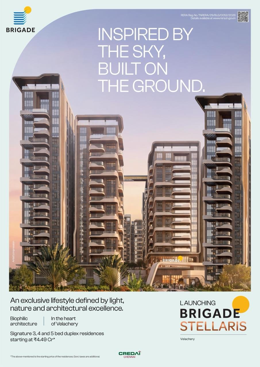 Brigade Stellaris is a premium pre-launch residential address by the trusted Developer, located in the heart of Velachery, Chennai. The project offers thoughtfully designed3 & 4 BHK Luxury Duplex Residences with smart layouts, contemporary interiors and high-quality fittings — ideal for modern families. Residents will enjoy a full suite of lifestyle amenities including a clubhouse, gym, landscaped gardens and more coming soon. With excellent connectivity to major roads and public transport, and neighbourhood access to schools, hospitals, offices and malls, Brigade Stellaris combines luxury, convenience and long-term value.